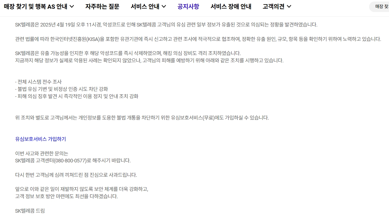 그래서 SK텔레콤에서 아예 유심보호서비스를 무료로 열어뒀더라고요. 해커들이 유심만 바꿔치기해서 문자나 인증번호를 훔쳐가는 피해를 막기 위한 서비스! 이런 시대엔 미리 준비하는 게 진짜 중요하다는 생각이 들었어요.