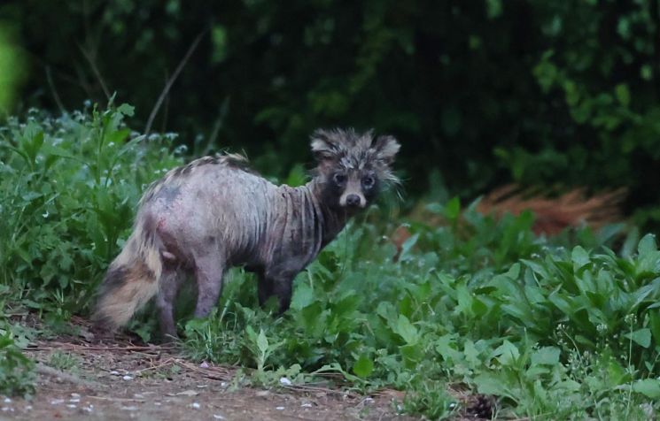 도심 공원에 나타난 털 빠진 너구리, 진짜 괴생물?