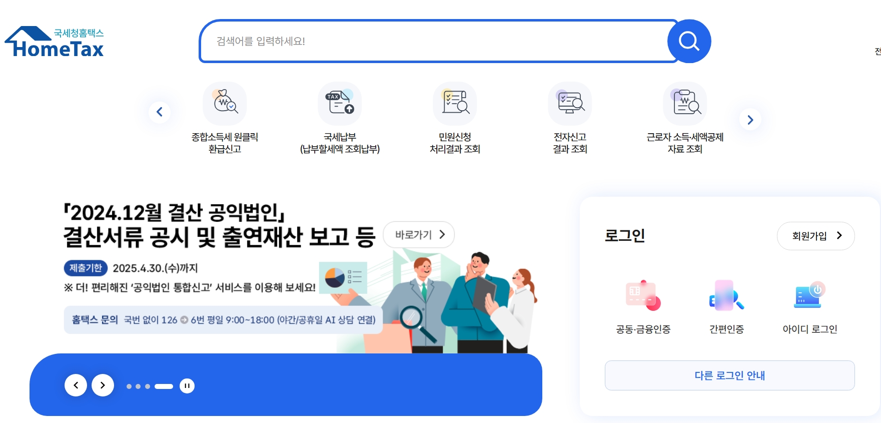 - 국세청 홈택스 또는 모바일 홈택스에 접속합니다.