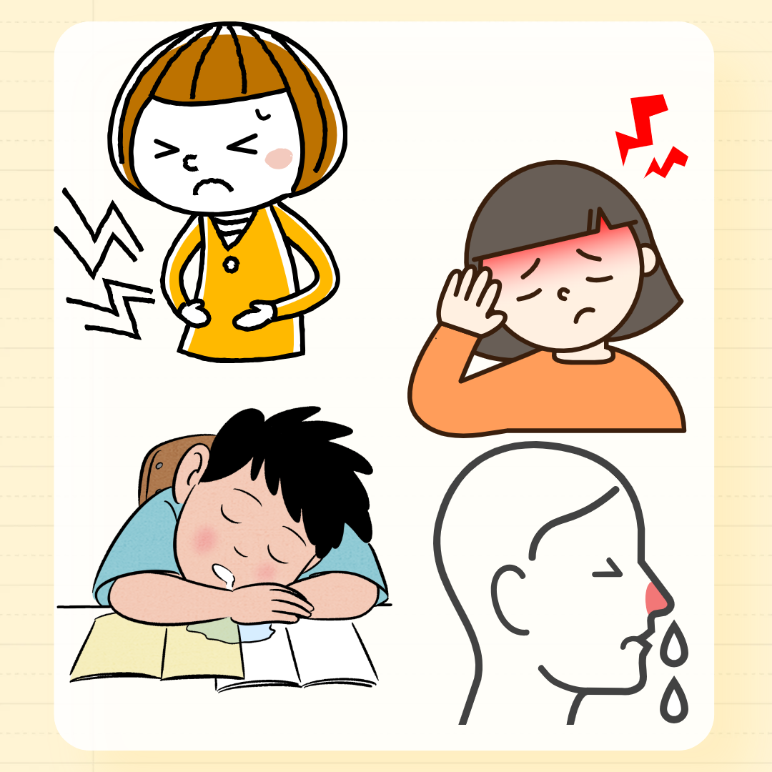 | 기타 증상 | 콧물이나 인후통, 졸음 |